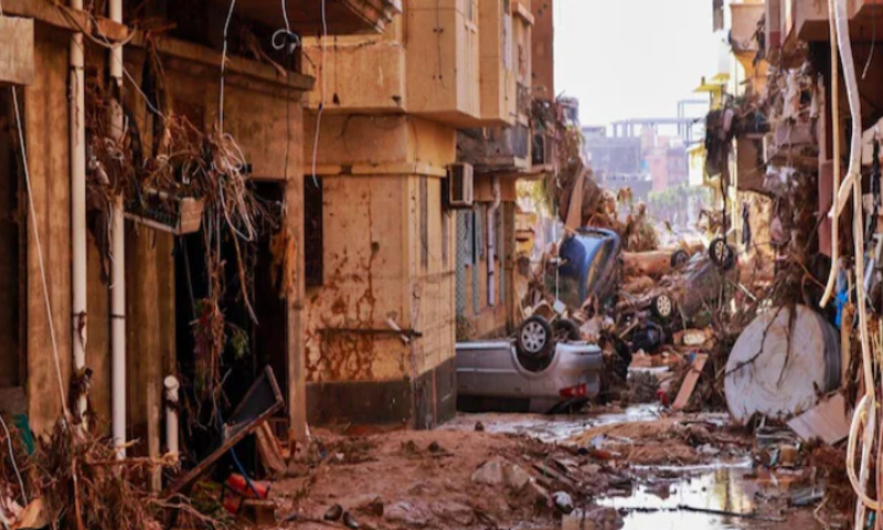 लीबिया में आए बाढ़ के कारण कई लोगों ने अपनी जान गंवा दी है। हजारों लोगों के शव मिले हैं। कई लोग अभी भी लापता चल रहे हैं। इस बीच, शनिवार को अंतर्राष्ट्रीय सहायता की खेप लीबिया पहुंचनी शुरू हो गई है। रविवार को बाढ़ ने बंदरगाह शहर डर्ना को जलमग्न कर दिया है। इस बाढ़ में हजारों लोग और उनके घर समुद्र में बह गए हैं। तूफान के कारण हुई मूसलाधार बारिश के दबाव में दो बांध टूटने की भी खबर है।
