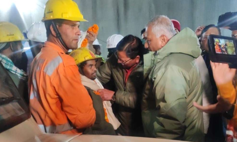 मुख्यमंत्री पुष्कर सिंह धामी बाहर निकाले गए श्रमिकों से मुलाकात कर रहे हैं। केंद्रीय राज्य मंत्री जनरल ( से.नि) वीके सिंह भी मौजूद हैं। मुख्यमंत्री पुष्कर सिंह धामी ने श्रमिकों और रेस्क्यू अभियान में जुटे हुए कर्मियों के मनोबल और साहस की जमकर सराहना की। बाहर निकाले जा रहे श्रमिको के परिजन भी टनल में मौजूद हैं। टनल से बाहर निकाले गए श्रमिकों का प्रारंभिक स्वास्थ्य परीक्षण टनल में बने अस्थाई मेडीकल कैंप में ही किया जाएगा।