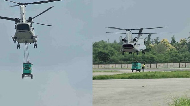 भारी जनरेटर लेकर उत्तरकाशी आपदाग्रस्त क्षेत्र की ओर जा रहा भारतीय वायुसेना का चिनूक हेलिकॉप्टर तेज हवाओं के कारण अस्थिर हो गया। सुरक्षा को ध्यान में रखते हुए उसे चिन्यालीसौड़ में सुरक्षित लैंडिंग करनी पड़ी। मौसम सुधरने के बाद जनरेटर को गंतव्य तक भेजने की योजना बनाई गई है।