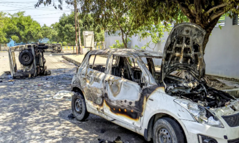 आक्रोशित कर्मचारियों ने सड़कों पर जाम लगा दिया और देखते ही देखते पत्थरबाजी शुरू कर दी। इस दौरान कई वाहनों को आग के हवाले कर दिया गया। उग्र भीड़ ने पुलिस की गाड़ी को पलटकर उसमें भी तोड़फोड़ की। जानकारी के अनुसार, कुल पांच वाहनों में आग लगाई गई, जिनमें दो पुलिस की गाड़ियां और तीन आम लोगों के वाहन शामिल हैं।